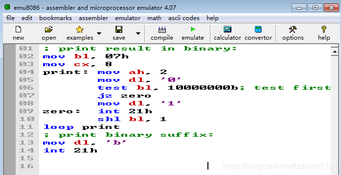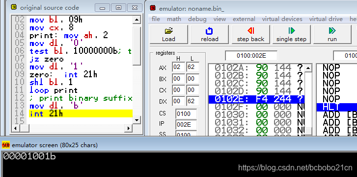 80x86汇编按二进制输出数字的程序图解和代码解释