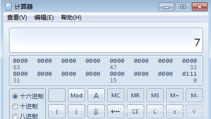 转换为二进制是 111;4 + 2 + 1 = 7;