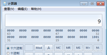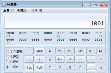 转换为二进制是1001; 2^3=8, 8+1=9;